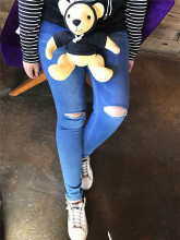 CC大码女装韩版膝盖割破小脚裤牛仔裤胖MM2017春新款201