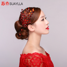 苏喜 新娘头饰红色韩式盘发发夹结婚发饰礼服配饰婚礼头花饰品