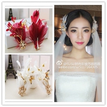 星风尚新娘头饰红色羽毛发夹边夹发夹发饰花朵中式结婚舞蹈配饰品