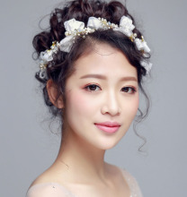 星风尚韩式新娘头饰头发箍发带头花珍珠蕾丝蝴蝶结婚饰造型配饰品