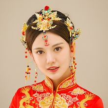 新娘古装头饰复古中式凤冠流苏发饰结婚龙凤褂饰品秀禾服配饰包邮