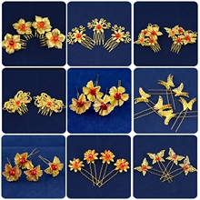 新娘饰品古装凤冠头饰秀禾和服民族风金色红色流梳中式步摇发钗风
