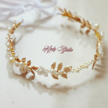 欧美森系田园巴洛克金树叶新娘头饰发饰品软发箍小皇冠仙女公主范