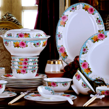 依众唐山骨瓷餐具 碗盘碗碟套装 家用中式碗筷鱼盘简约特价陶瓷器
