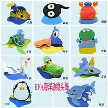 卡通海洋动物头饰帽子 小蝌蚪海豚金鱼海黾鲨/鳄鱼螃蟹天鹅鸭子