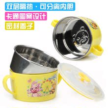学生汤碗带手柄带盖 双把不锈钢碗塑钢饭盒双把防烫碗儿童餐具