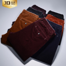 喜渡冬季加绒加厚灯芯绒男裤男士休闲裤直筒修身条绒裤弹力男长裤