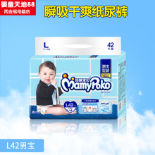 妈咪宝贝瞬吸干爽婴儿纸尿裤尿不湿大号L42+2片男宝宝优惠加量装