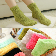 A008半边绒加厚珊瑚绒袜子毛绒袜地板袜女袜冬穿襪子