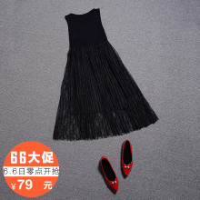 欧洲站2017春秋新款女装无袖蕾丝连衣裙女春装中长款背心A字裙子