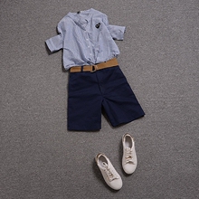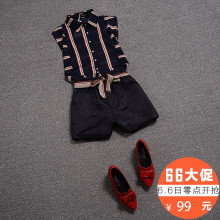 欧洲站2017夏装欧货潮新款女装时尚条纹衬衫五分裤休闲套装两件套