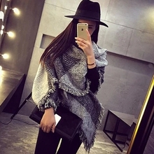 韩国2014秋冬季保暖新款仿羊绒蓝白格子毛线围巾女韩版大围脖披肩