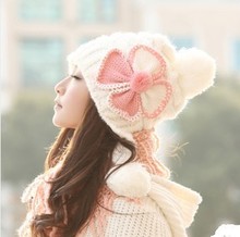 2014韩秋冬蝴蝶结球球可爱加厚保暖护耳女士毛线帽针织帽帽子包邮