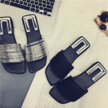 2016夏季新款 韩版舒适方头一字拖 露趾平底女凉拖 平跟拖鞋女 潮