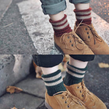 秋冬女袜 加厚文艺复古女士粗线保暖袜子双针翻口羊毛袜中筒袜