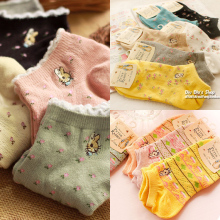 5双包邮优质日本彼得兔子船袜园小碎花纯棉女袜子韩国可爱刺绣