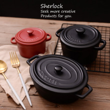 Sherlock炖盅 西式哑光陶瓷烤碗 烘焙模具带盖双耳果冻布丁碗汤盅