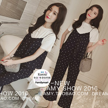 韩国代购夏装短袖T恤+吊带波点孕妇阔腿裤喇叭裤三件套孕妇套装