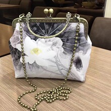 B451~B468 原创国风水墨花卉20CM口金材料包剪好烫好包邮