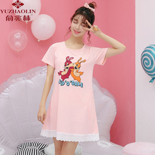 俞兆林夏季新款短袖睡衣女纯棉少女连体睡裙胖MM休闲可爱家居服