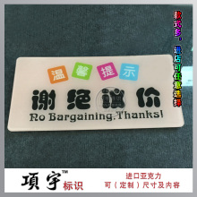 谢绝还价议价亚克力公共场所温馨提示牌商场标识标语标志墙贴标牌