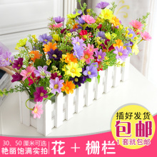 假花盆栽摆件栅栏花盆仿真花套装客厅节日室内装饰品花卉塑料花艺