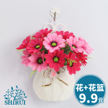 室内客厅门窗墙壁装饰壁挂花篮卧室墙壁塑料仿真花假花盆栽小套装