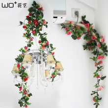 wo+仿真花玫瑰花藤条 花藤 假花 空调装饰花 婚礼家居客厅吊藤