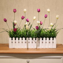wo+仿真花郁金香木栅栏花套装花艺 客厅卧室家居假花装饰花绢花