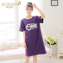 韩版可爱卡通纯棉短袖学生睡裙女夏季大码宽松孕妇睡衣女夏天公主