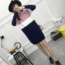 莉之纯2016秋冬新款韩版修身针织衫中长款打底毛衣连衣裙女装