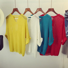 韩版新款秋冬季中袖针织衫女套头宽松显瘦薄款纯色圆领打底毛衣潮