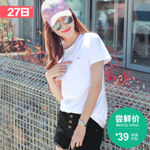 学生白色纯棉短袖体恤韩版2017新款夏百搭短款 上衣修身纯色t恤女