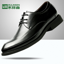木林森男鞋夏季英伦男士商务正装皮鞋男真皮尖头系带婚鞋潮流鞋子
