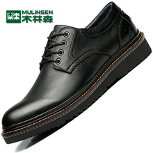 木林森夏季男鞋休闲鞋男士商务皮鞋男真皮英伦系带透气低帮潮鞋子