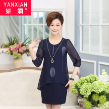 妈妈连衣裙夏女40-50岁2017春新款端庄大气中年夏装雪纺袖中长款