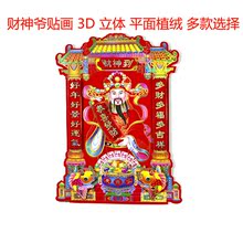 财神到年画贴纸挂画门贴财神爷贴画新年装饰品 立体植绒3d贴画