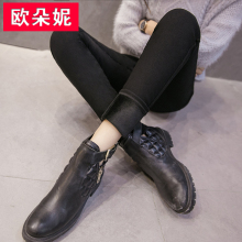 秋款加厚打底裤加绒外穿高腰大码女裤黑色小脚长裤踩脚保暖裤冬季