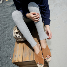 打底裤外穿薄款秋款纯棉螺纹高腰弹力黑腰贴标九分小脚裤大码学生