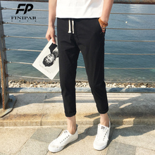 春夏季仿亚麻九分裤男小脚裤潮流男士哈伦裤韩版修身棉麻休闲裤子