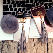 韩国獭兔毛球6S/7苹果iPhone6plus手机壳镜面流苏5s保护套7女神款
