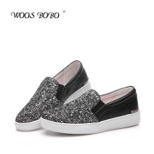 WOOSBOBO内增高女鞋韩版舒适乐福鞋厚底亮片休闲一脚蹬懒人鞋单鞋