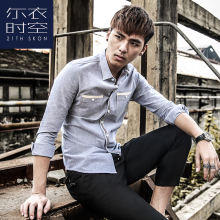 尔衣时空春装男士长袖衬衫韩版修身型青年牛津纺衬衣男休闲纯棉潮