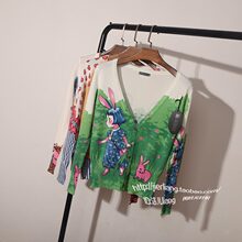 印花针织衫开衫 2017春装新款薄毛衣小外套V领披肩 甜美兔子线衣