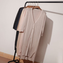 春夏装女薄针织衫 七分袖开衫中长款针织外套 冰丝披肩防晒空调衫