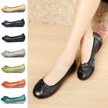 豆豆鞋女鞋春浅口单鞋真皮牛皮低跟平底护士孕妇妈妈大码休闲白色