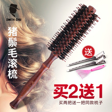 褚铁匠家用猪鬃毛梳子卷发梳子内扣吹直发美发梨花头圆筒卷梳滚梳
