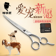 褚铁匠泰迪宠物剪刀专业修毛剪狗猫平直剪上下翘弯剪美容套装7寸