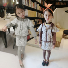 3女童套装2017春装新款童装韩版儿童蕾丝拼接开衫外套+裙裤套装