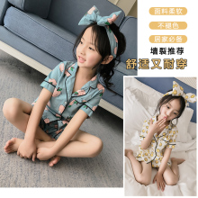 艾上朵女童家居服套装2017夏装新款童装短袖短裤开衫儿童舒适睡衣